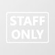 Ensure clear communication in your workplace with this "Staff Only" window cling. Designed with a professional white signage font inside a sleek rounded-corner rectangle, this sign is perfect for offices, restaurants, retail stores, or any restricted areas. Easy to apply and remove, it provides a clean and effective way to manage access. Find more designs at Bunny Prince Design, or reach out if you’re looking for something different not yet available in the store.