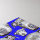 Featured on a blue background is a Staffordshire bull terrier puppy in a pattern.