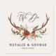 Rustic floral and stag antlers we do wedding beverage label design. With beautiful rust, terracotta, blush pink and sage green pampas grass eucalyptus watercolor details. This modern wedding design is sure to set the style for your big day.