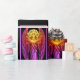 A dramatic stained glass angel, in vibrant jewel colours with a golden halo, announcing the advent of Christmas