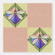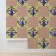 Cheerful and unique, this Peel 'n Stick wallpaper features an Art Nouveau style repeating design created with Leslie Sigal Javorek's elegant digital painting of an opalescent Stained-Glass Dragonfly pinned to a vibrant blue, purples, & pink kaleidescopic panel with green speckled frame set on point against a chequerboard background of honeysuckle yellow and cameo pink overlaid with a distressed tone-on-tone Oriental pattern. #ZazzleMade