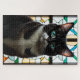 Stained Glass Black and White Cat Jigsaw Puzzle