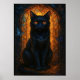 A captivating fantasy artwork of a black cat with glowing orange eyes, framed by stained glass patterns in warm golden tones and soft blue butterflies. Mysterious and enchanting, this design is perfect for cat lovers, gothic décor fans, and fantasy art collectors.
