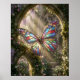 A radiant stained glass butterfly spreads dazzling wings filled with sapphire blue, ruby red, emerald green, amber gold, and amethyst tones. Each wing is divided into elegant geometric panes with delicate framework and glowing transparency, creating a cathedral-inspired masterpiece. Set inside a peaceful garden sanctuary of ivy-covered arches, blooming flowers, mossy stone, and warm filtered sunlight, this artwork feels sacred, decorative, and timeless. Ideal for colorful home décor, feminine spaces, gift giving, spring interiors, and anyone who loves butterflies and luminous art.