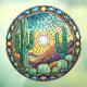 Bring the beauty of the desert into your home with this faux stained glass window cling featuring a vibrant cactus scene. Perfect for adding a touch of colour and warmth to any window, this easy-to-apply decal mimics the look of real stained glass without the need for installation. The design showcases a variety of cacti against a picturesque desert backdrop, illuminated by a radiant sun. Enjoy the stained glass aesthetic with the convenience of a window cling.