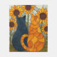 Stained Glass Cats and Sunflowers Art Design Fleece Blanket