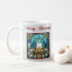 Stained Glass Christmas Candle Holly Green Glitter Coffee Mug
