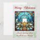 Stained Glass Christmas Candle Holly Green Glitter Holiday Card