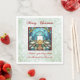 Stained Glass Christmas Candle Holly Green Glitter Napkin
