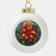 Stained Glass Christmas Flower red Poinsettia Ceramic Ball Christmas Ornament