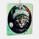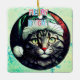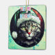 Stained-Glass Christmas Grey Tabby In Green Hat Ceramic Ornament