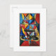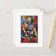 A warm and vibrant postcard for coffee lovers and art enthusiasts alike. This stained-glass–inspired design features bold geometric lines and flowing curves, with each section painted in rich tones of red, gold, green, blue, light blue, orange, and brown. Random white splatters add a wintery charm, making it feel cosy and inviting. Perfect for sending to friends or adding to your collection.