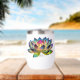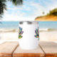 The bottle looks even better in real life. The ice cubes I put in lasts all day! I have my bottle with me all the time. It's summer and having something cold to drink feels amazing. With this bottle I always have something super cold. I have only tried the hot drink once and it lasted a long time as well. The color blue is a navy blue and the white printed on it is vibrant. It printed perfectly. I love my personalized smile water bottle.