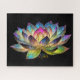 Stained Glass Colorful Lotus Flower on Black Jigsaw Puzzle