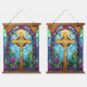 The polyester fabric displayed many wrinkles and several sharp creases throughout. At the bottom of the tapestry, I noticed a bulge in the fabric because it was not pulled tight enough before being connected to the wooden boards. It took me over an hour to spay water on the tapestry before putting it on an ironing board where I used a warm iron over a polyester cloth to remove the wrinkles and creases in the material. I was able to get out the wrinkles and creases that made that tapestry look as beautiful as its picture.