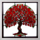 Colourful stained glass window featuring an artistic tree with vivid red leaves, showcasing intricate craftsmanship and elegance, perfect for themes of nature, beauty, and creative artistry.