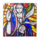 Bright and Colourful Stained Glass Design with Religious Figure.