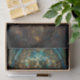 An ethereal woman gazes out, a headdress of fairy wings adding to her otherworldly appearance, all worked in a gorgeous stained-glass style image
