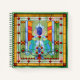 8.5” x 8.5” custom spiral notebook with an image of a stained glass fantasy created with red, orange, yellow, green, blue, aqua and pink stained glass with a floral design, dotted with luminous green orbs and deep red crystal orbs. The back has an image of green stained glass. See the entire This & That Notebook collection in the OFFICE section.