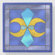 A simple yet beautiful blue stone coaster with a stained glass geometric moon design.