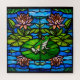 Stained Glass Green Frog and Water Lily Flowers Jigsaw Puzzle