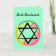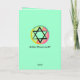 The "Star of David" represents the Jewish Holiday "Rosh Hashanah" This design is of a black star on a circle of a series of different colours that resemble a stained glass window. Inside is a wish for having a happy and healthy new year.