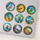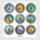 This 9-sticker pack features stained glass honey bees and honeycombs in shades of blue, green, and gold.