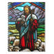 Stained glass image of Jesus and lambs Spiral Notebook