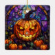 Stained Glass Jack-o'-Lantern Ceramic Ornament