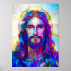 Stained Glass Art of Jesus Christ with a cute easter bunny and vibrant easter eggs. Cute rabbit animals for the resurrection of the christian religion. Happy Easter with this cool Jesus Portrait.