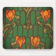 Stained glass look floral art nouveau orange green mouse pad
