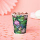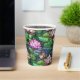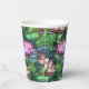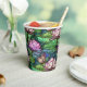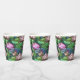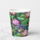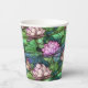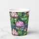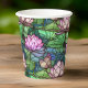 Beautiful set of paper cups with a seamless lotus pattern in stained glass style.