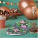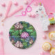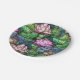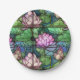 Beautiful set of paper plates with a seamless lotus pattern in stained glass style.