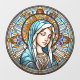 Beautiful window cling for home, office or even the rear window of your car or SUV! Design features an AI generated round portrait of the Madonna in stained glass.