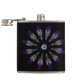A lovely stained glass pattern adorns this flask in dominant colours of purple, blue, yellow and black. Twelve abstract feathers circle a central mask to form a spiritual mandala design with a Native American sensibility.