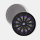 A lovely stained glass pattern adorns this magnet in dominant colours of purple, blue, yellow and black. Twelve abstract feathers circle a central mask to form a spiritual mandala design with a Native American sensibility.
