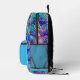 Your child will be the envy of all their friends with this brightly coloured stained glass backpack. The background is done in turquoise with their name on it in an elegant script.   The front pocket and the sides at the bottom are done in turquoise blue. The rest of the backpack is done in a vibrant coloured stained glass pattern in dark blue, turquoise, light pink, dark pink and purple.  Truly a unique, beautiful backpack that they will want to use year after year!