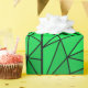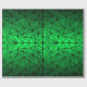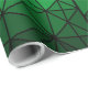 This image features a geometric pattern of white lines forming a grid of interconnected triangles. The triangles are filled with a gradient of green hues, transitioning from a darker green at the edges to a bright, vibrant green in the centre. The pattern is symmetrical, with four distinct sections divided by white lines. The overall effect is a mesmerising and abstract design that plays with light and colour.