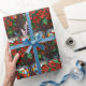 Stained Glass Red Poinsettia Flowers and Berries Wrapping Paper