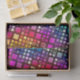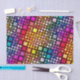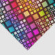Bold and vibrant graphical stained glass square tiles, edged in a black outline.