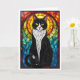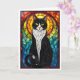 Stained Glass Style Black and White Tuxedo Cat Card