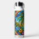 Stained Glass Style Palm Tree and Hibiscus Tropical Water Bottle