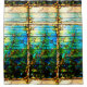 An art nouveau era stained glass window of starfish under the sea by tiffany. In colours of blue, teal, gold and brown. An elegant vintage design.