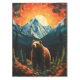 Stunning stained glass style featuring a majestic bear against colourful sunset mountains with bold lines and vibrant hues.