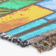 A quality printed throw has its advantages. This is a much finer weave throw than its loopier cousins, and though lighter, it is worth the investment for custom room accessorizing. The back is much prettier than the typical brown, and the fringe on the long sides very vivid, the selvage nicely done. Before photographing, I washed the throw in cold water, delicate, with a thicker woven throw the same size. On tumble dry low, this throw was dry in half the time as the other. This is a very practical quality if you use throws for furniture covers or to wrap up in frequently. The sleekness of the fabric makes it a great layer for accenting or protecting without the feeling of sitting on too much stuff. Perfect for napping or when you feel a light chill coming on. The color printing is beautiful and on this fabric, matched the design and color of my Photoshop image. This is an advantage for blending room fabrics and colors. The fringe on the short sides prints the colors from the design image and therefore varies from the side fringe. I streaked a white fractal line through the plaid pattern to give the illusion of weaving. This printed as crisp as an illusory thread, and put some white in the short side fringe, showing another advantage of print vs loomed- for artistic purposes, line lines, detail, and color integrity can be planned and preserved. My loomed throws have color limitations and more of a needlepoint texture. Print throws reproduce an exact image. The throw felt a little stiff straight out of the package, but this went away in the first delicate wash. Of course I searched the wash water for ink or bleeding and there was none.