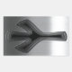 Illusion art: a peace sign (sans circle) cut-out of layers of brushed stainless, receding into the black hole of forever. T-shirts, novelty gift swag.