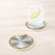 Simple and elegant coaster. Stainless steel with gold trim. Design is all image printed on sandstone coast. Not real or imitation metal