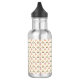 Stainless steel water bottle with a floral pattern in pink and brown on a cream background. Black loop cap, modern and eco-friendly design.