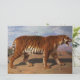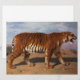 This design features a painting by Rosa Bonheur (1822–1899), who was a French artist best known as a painter of animals. It shows a tiger prowling aggressively along the sandy plains of Asia. The tiger's mouth is open and it is baring its sharp teeth to show its ferocity. The tiger has typical markings that include a vibrant orange or reddish coat with dark vertical stripes that help camouflage them in their natural habitats; its belly, face and tail are white. The tiger appears to be hungry for prey.