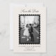 This modern stamp-style Save the Date card features a single photo framed with a bold, scalloped edge inspired by classic postage stamps. The soft ivory background paired with elegant typography creates a refined yet contemporary look that many women love for stylish, photo-focused wedding stationery.